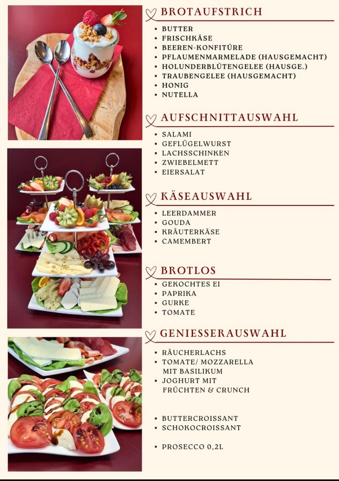 Genießen Sie unser liebevoll zubereitetes Frühstück in gemütlicher Atmosphäre – allerdings nur zu unseren festen Frühstücksterminen und mit vorheriger Reservierung oder buchen Sie ein individuelles Frühstück für Gruppen auf Anfrage. Ob mit Familie, Freunden oder Kollegen – bei uns beginnt der Tag mit Liebe zum Detail.